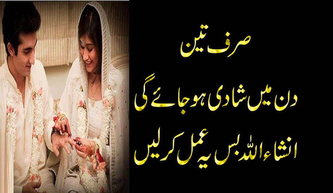 اگر آپ اپنے والدین کی مرضی سے یا پھر من پسند شادی کرنا چاہتے ہیں لیکن شادی نہیں ہو پا رہی۔ کیونکہ شادی میں کوئی نہ کوئی رکاوٹ آرہی ہے اور عمر بڑھتی جا رہی ہے تو یہ پاور فل وظیفہ کر لیں۔مشاہدات سے یہ بات ثابت ہوئی ہے کہ یہ وظیفہ آج تک جس کو بھی دیا گیا ان میں سیکسی کی تین دن میں شادی ہوئی کسی کی ایک ہفتے میں اور بعض کی ایک ماہ میں۔ آپ نے کرنا یہ ہے کہ اسم اعظم